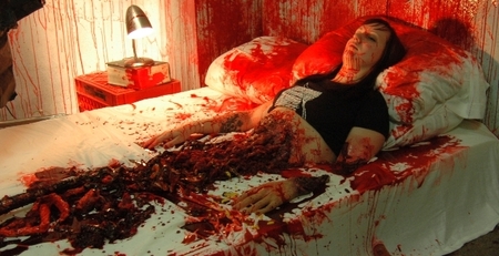Rich went over the report a few times before he began feeling nauseous. The pictures were enough to make a normal man queasy, but reading the description over and over again, ‘torn out liver, partial uterus, severe facial lacerations, missing limbs, 8 feet of missing small intestine . . .” he ran to the toilet. Puking chunks of a Reuben sandwich from earlier and some unidentifiable stomach contents, Rich leaned back against his beige tiled bathroom wall that reflected sick in the fluorescent light. The bathroom had always reminded him of motels that charged by the hour, and have so much cum on the walls and floor, in the illumination of a black light one would instantly go blind. He wobbled to the scratchy olive sofa and pulled out the contents of the brown bag. Soon he felt better, he felt the color returning to his face, and his stomach settled. You do what you can to live, he thought, leaning back into the couch and letting sleep overtake him. Dreams are monsters, ripping through his skin, tearing pieces of flesh from his face, shredding through his torso and scooping out organs like a melon baller. The monster smiles with big canines oozing blood. They have teeth, big teeth, big bad teeth that smell awful, they smell like, they smell like . . . like a toasted Reuben sandwich? Rich jumped awake at the ringing phone by his head and damn near yanked the receiver out of the jack.