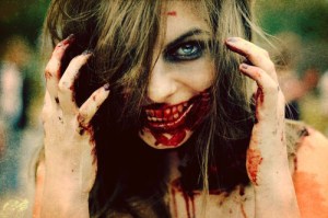 Finally the little beam of light from his shoulder illuminated the Celia thing huddled over the corpse, she hadn’t been there moments before. “Put your hands up!” he shouted training his gun on her. He nearly dropped the gun watching her rise and seeing the teeth and fingers protruding from her face, the sickening headband crowning her forehead and the long flowing cape of flesh dangling from her hunched back.